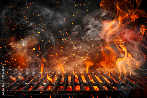 A grill with a lot of smoke and fire coming out of it