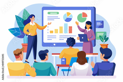 a group of people in a meeting room with a whiteboard, An informative slideshow for an educational workshop or seminar