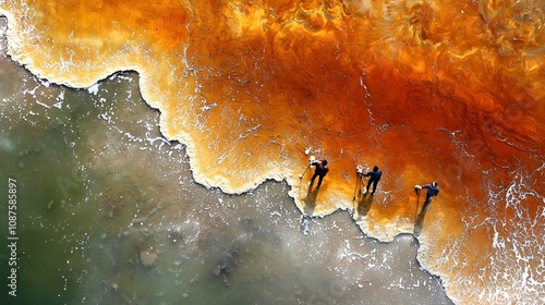 A group of volunteers cleaning up an oil-stained shoreline, their efforts dwarfed by the scale of the disaster.