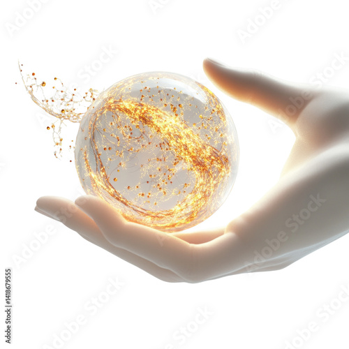 A hand holding a large, glowing sphere