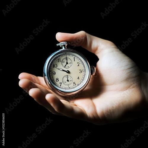 A hand holding a stopwatch, black background, symbolizes measuring time and efficiency.