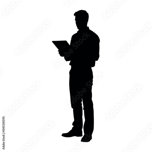 A handsome man standing with laptop vector silhouette