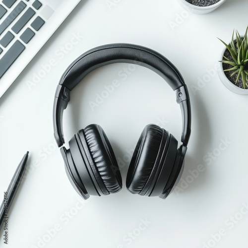 a headphone on a white desk