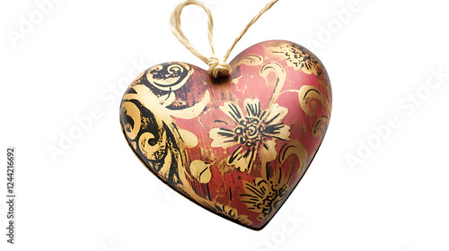 A heart-shaped bookmark with a romantic design, isolated on white background in HD