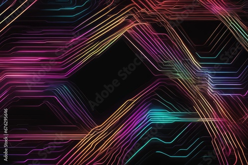 a high quality stock photograph of 3d render. Modern neon wallpaper. Glowing dynamic lines over black background