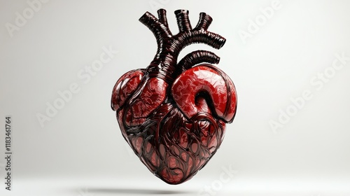 A highly detailed and anatomically accurate human heart, showcasing veins, arteries, and chambers, placed on a clean white background.