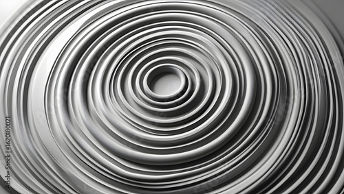 A highly detailed and textured flat surface is embossed with a series of concentric ring ripples, captured in a top-down view, with the entire scene presented in a monochrome color scheme,