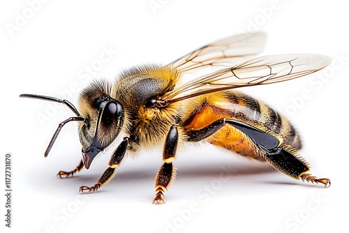 A Highly Detailed Honey Bee Macro Shot Isolated on a Soft Gradient Background