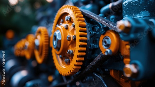 A high-resolution shot captures the intricate details of turning gears, illustrating the precision and craftsmanship involved in modern machinery, and engineering elegance.