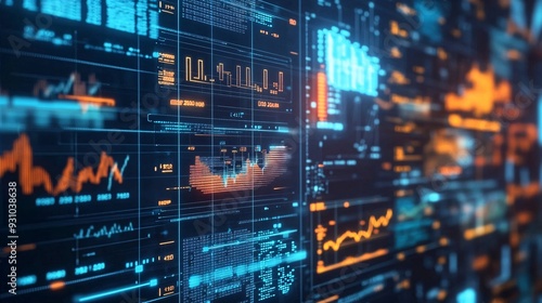 A holographic display of data analytics with graphs and numbers floating in a virtual space