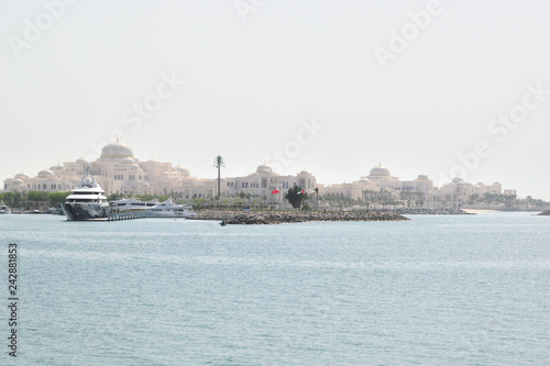 A huge luxury yacht on the background of the palace