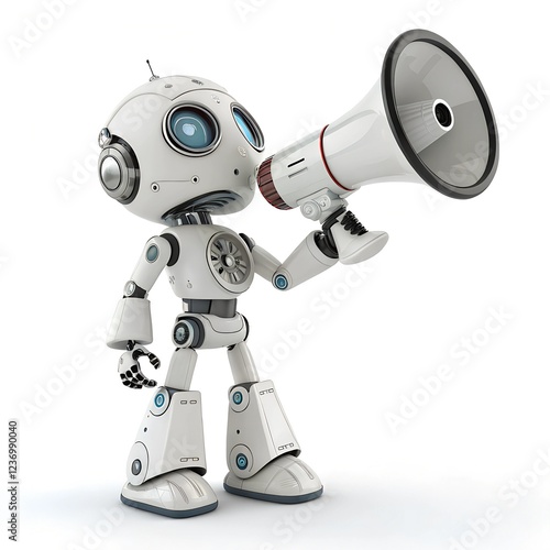 A humanoid robot delivering a message with a megaphone, combining technology with expressive interaction