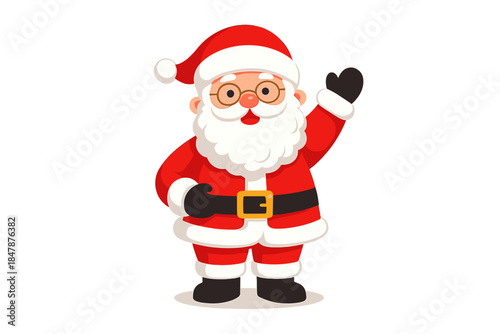 A joyful Santa Claus figure wearing glasses, a white beard, and a red suit, standing alone on a see‑through background