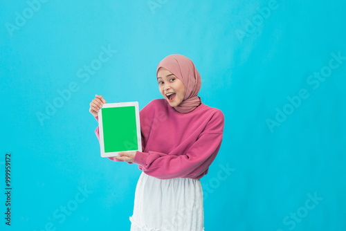A joyful woman shows a vibrant green sign, ideal for promotional or advertising use