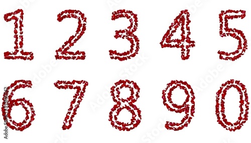 A large collection of numbers from red rose petals