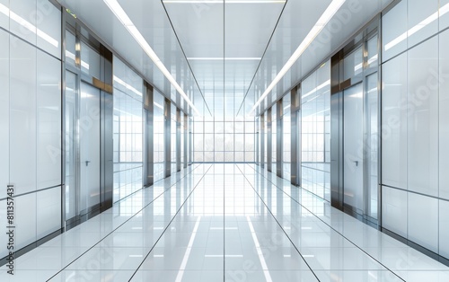 A large, empty, white room with a lot of windows. The room is very open and spacious, with a lot of natural light coming in from the windows. The walls are made of glass, which gives the room a modern