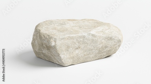 A large, light gray rock with a rough texture and jagged edges sits on a white background.