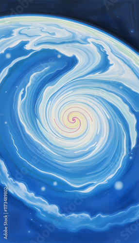 A large typhoon or cyclone in the earth atmosphere seen from space, crayon drawing, with white tones
