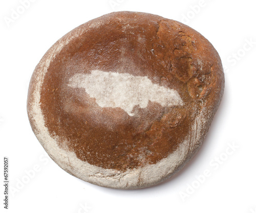 A loaf of fresh bread covered with rye flour in the shape of Jam