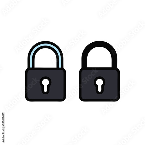 a Locked and unlocked lock icon, vector silhouette, isolated white background,