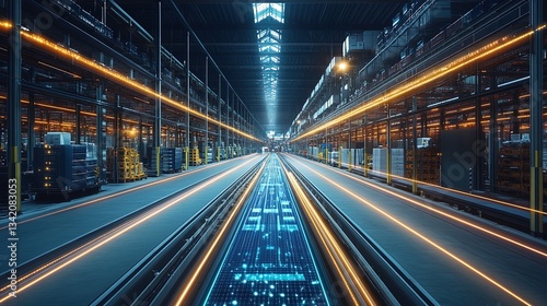 A logistics system integrating AI-powered efficiency in a futuristic supply chain hub