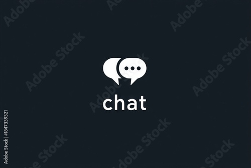 A logo for Chat is shown on a black background. speech bubble chat icon Concept.