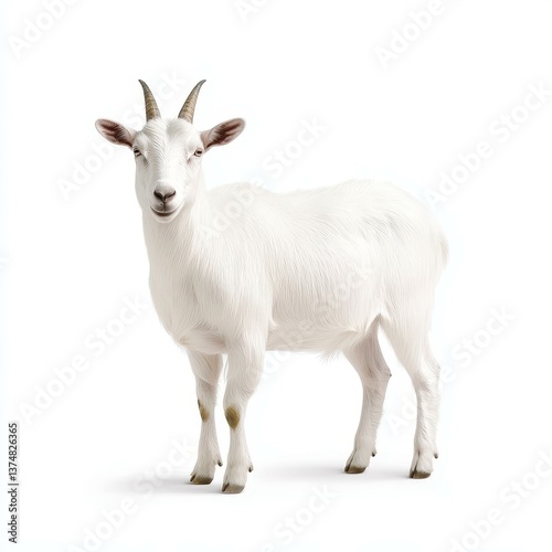 A lone goat stands proudly against a clean white backdrop, emphasizing its unique features in stunning clarity.