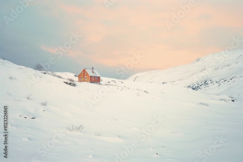 A lonely house with snow hillside winter landscape architecture building outdoors.