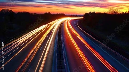 A long exposure photo of a highway at sunset, perfect for travel or landscape images