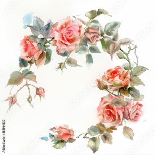 A loosely painted rose crown with watercolor washes, capturing the essence of these beautiful flowers on a white background.