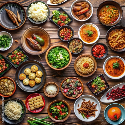 A lot of different Chinese dishes