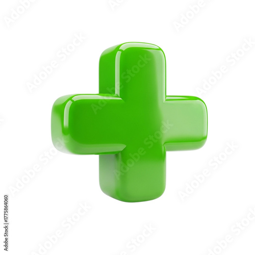 A luminous green plus sign symbolizing hope and healing emerging from the darkness radiating on transparent background