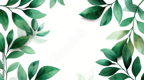 A lush green leaves frame encircles a serene white floral backdrop, creating an elegant space for your message.