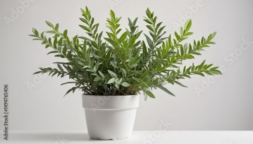 A lush potted sage plant, vibrant green leaves, white background , vertical, terracotta