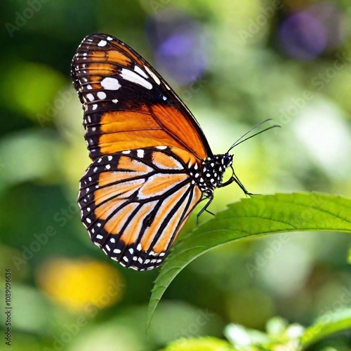 A macro photo of a butterfly with iridescent wings catching the light, soft focus creating a gentle blur of colors in the background, low angle shot that highlights the shimmering scales and the delic