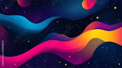 A magical cmyk-inspired background with swirling, glowing ribbons of cyan, magenta, yellow, and black floating in a starlit void. Starlit. Illustration