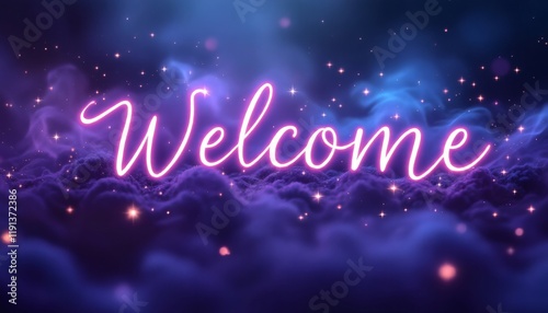 A Magical Welcome: Neon Sign in a Starry Nebula