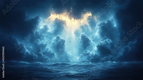 A magnificent sight of the sunlight piercing through the clouds, creating a heavenly view of great splendor and beauty