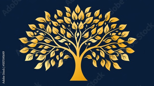 A majestic tree with golden leaves stands out against a dark blue background