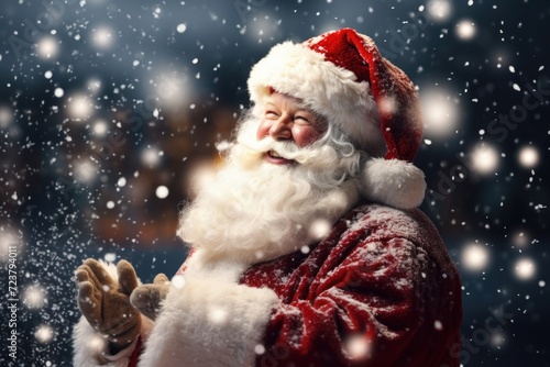 A man dressed in a Santa Claus suit and gloves. Perfect for holiday-themed designs and Christmas promotions