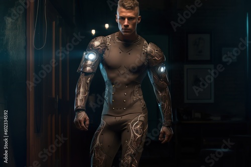 A man half the robotic standing looking. Generative Ai