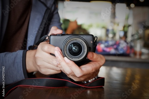 A Man Holding a Camera to Take Pictures