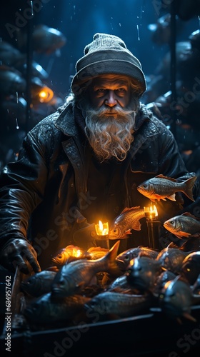 A man is on a fishing excursion. Generative Ai.