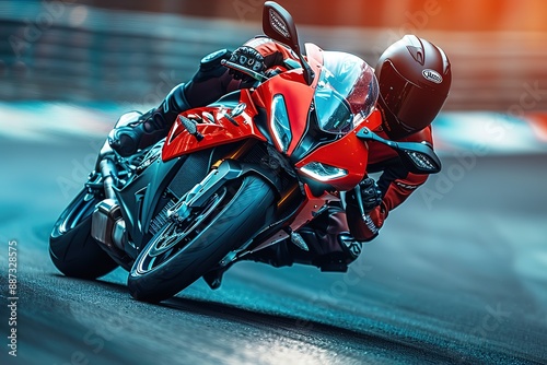 A man is riding a red motorcycle on a track