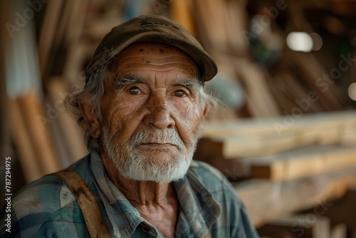 A man with a hat and a plaid shirt is looking at the camera with a serious look on his face a