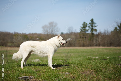 A maremma sheepdog on a small farm in Ontario, Canada.