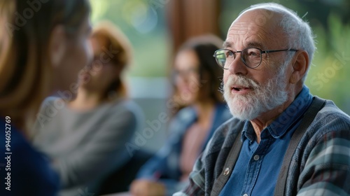 A mature adult participating in study groups, sharing insights and learning from the experiences and perspectives of others