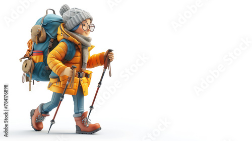 A mature woman hiker with backpack walking in mountain, summer outdoor activity