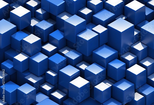 A mesmerizing composition of blue and white cubes creates a modern aesthetic