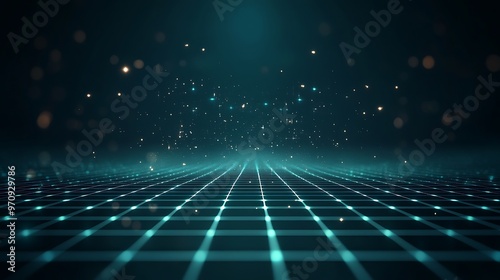 A mesmerizing digital landscape featuring a glowing grid and sparkling particles, ideal for technology and futuristic themes.